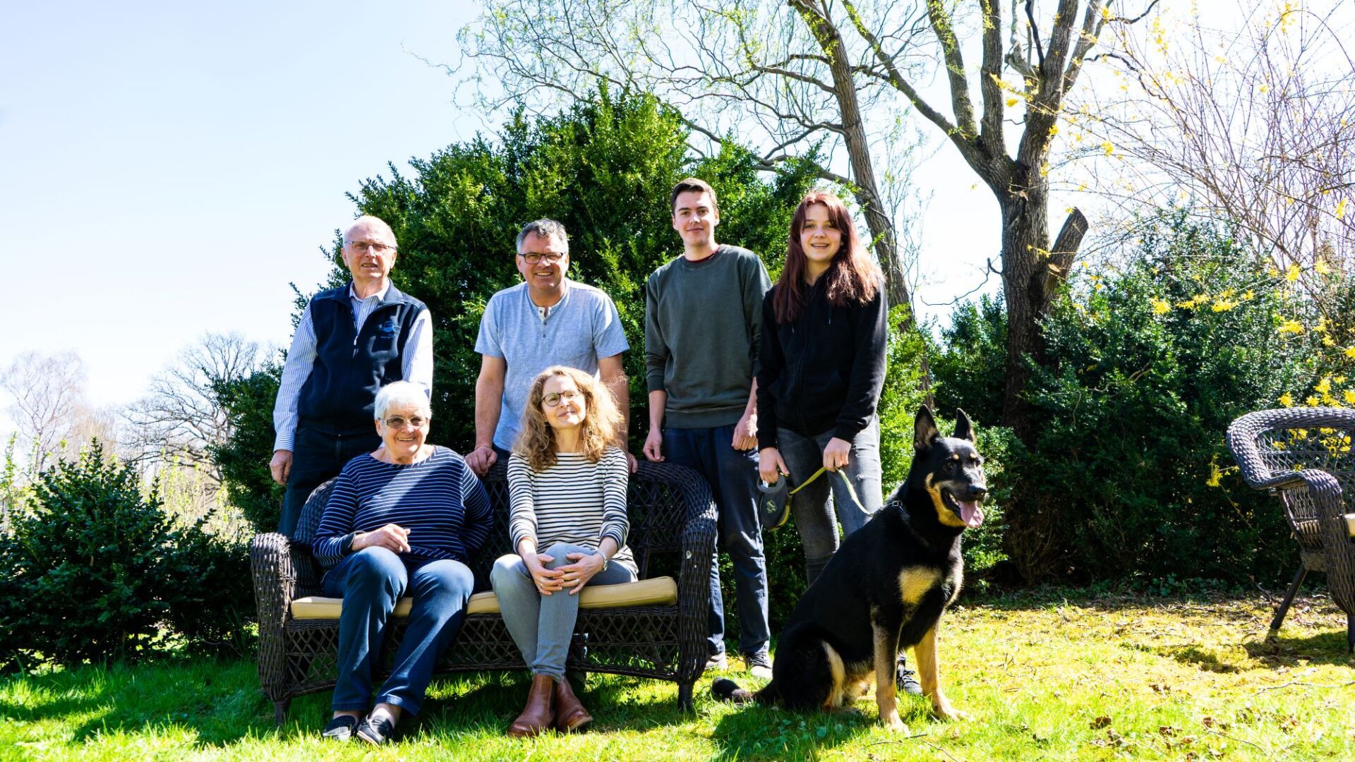 Das sind wir 6 Bau(e)rs + Hündin Aika
